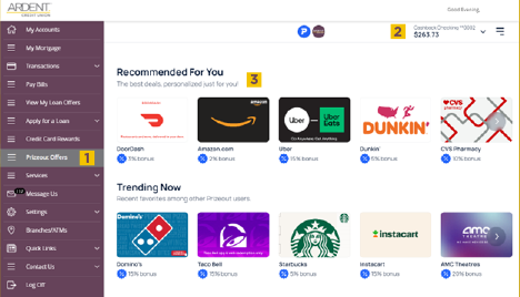 Log into eBanking and select Prizeout Offers from the main menu. Not using eBanking yet? Enroll for free to manage your Ardent accounts 24/7, and don’t forget to download the eBanking mobile app.
